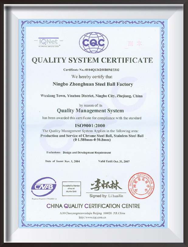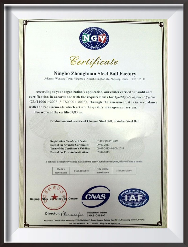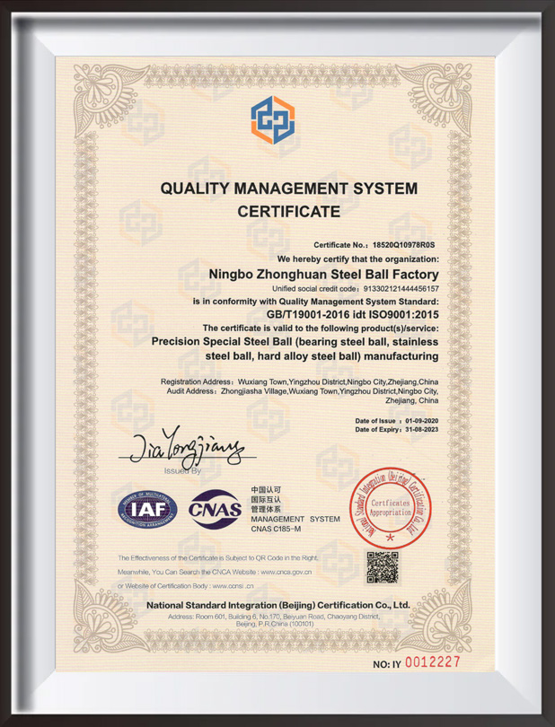 Ningbo Zhonghuan Steel Ball Factory was established in 1988 and is located in the eastern port city of Ningbo, covering an area of nearly 15000 square meters. We are a precision steel ball manufacturer and a member unit of the China Rolling Element (Steel Ball) Association. The company mainly produces precision steel balls such as bearing steel balls, stainless steel balls, ceramic balls, and hard alloy balls. The products of Zhonghuan Steel Ball Factory provide supporting services for domestic manufacturers of automotive bearings, low-noise bearings for motors, petroleum machinery, automotive parts, etc., and are also exported to Europe, North America, South America, and various countries in Asia.